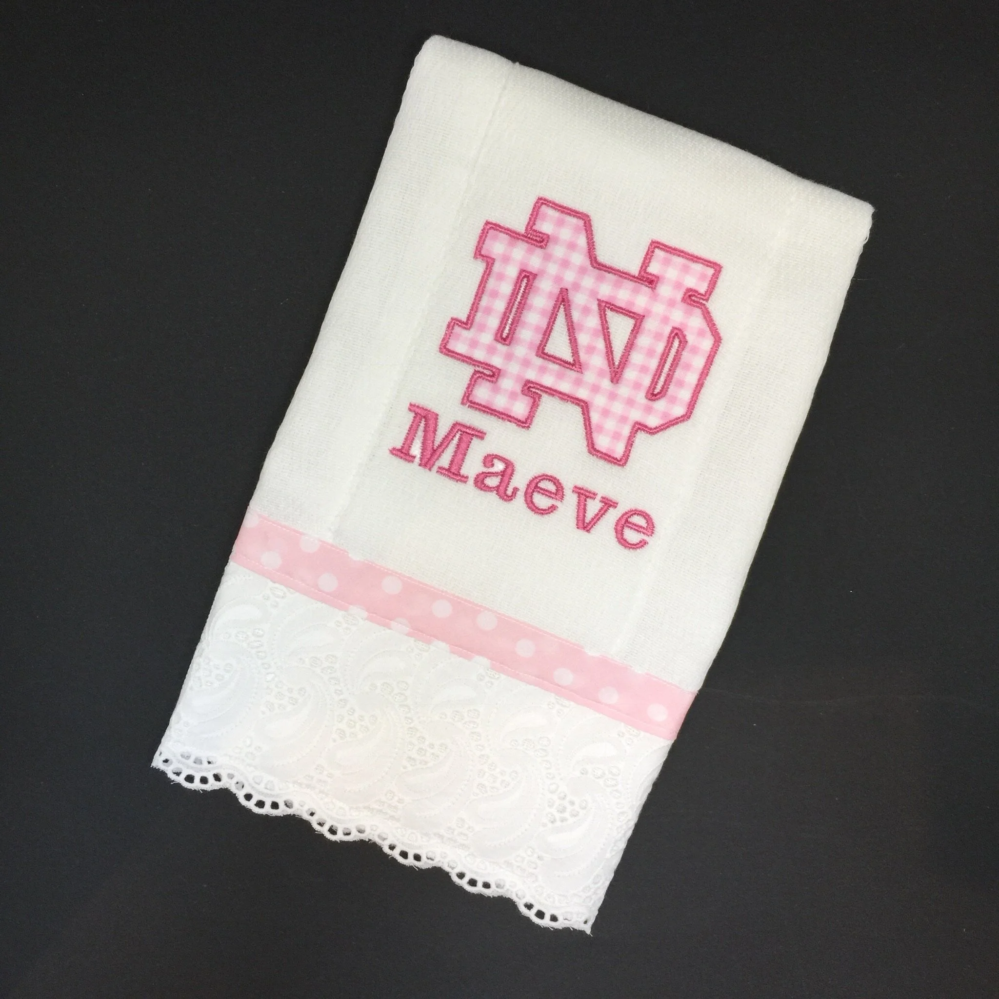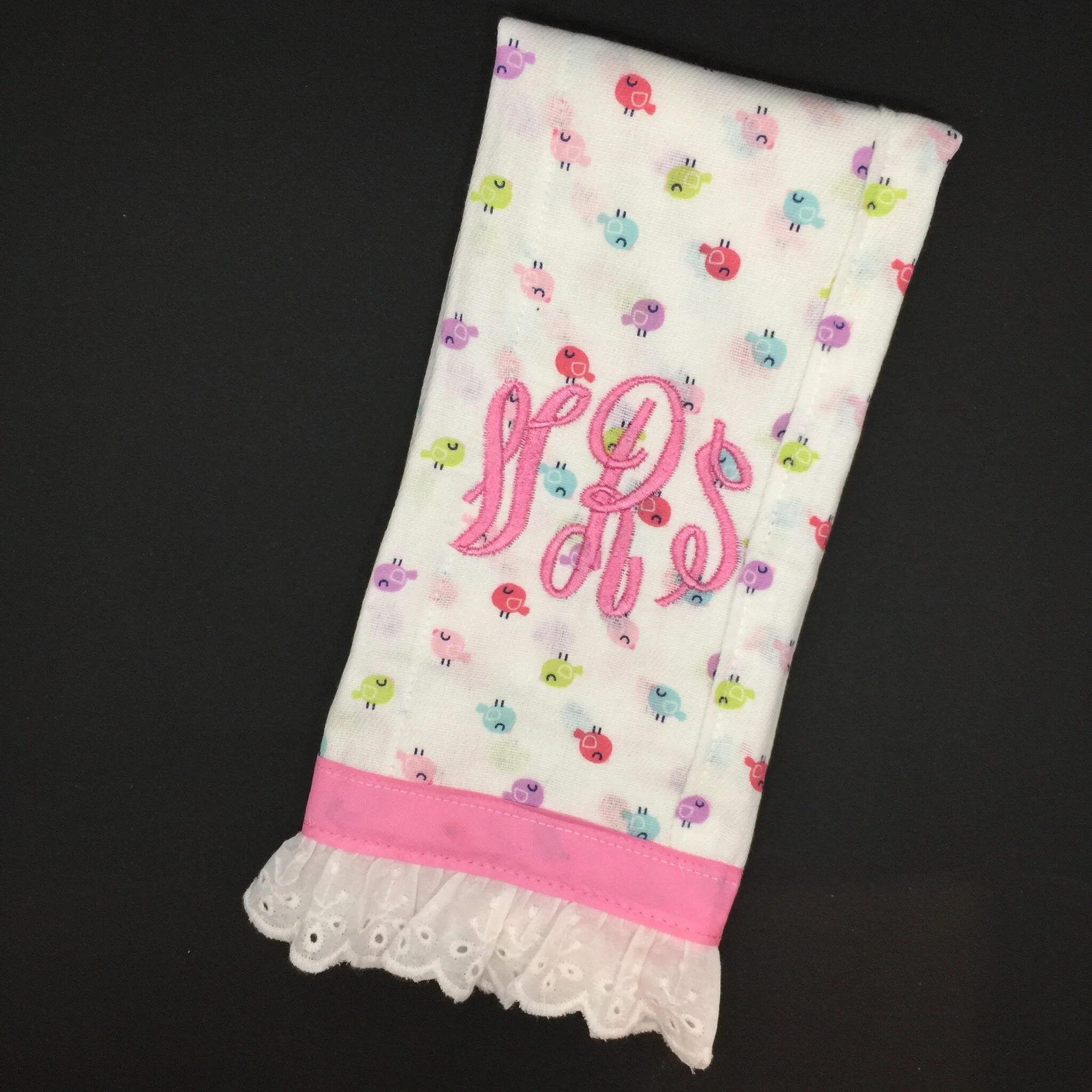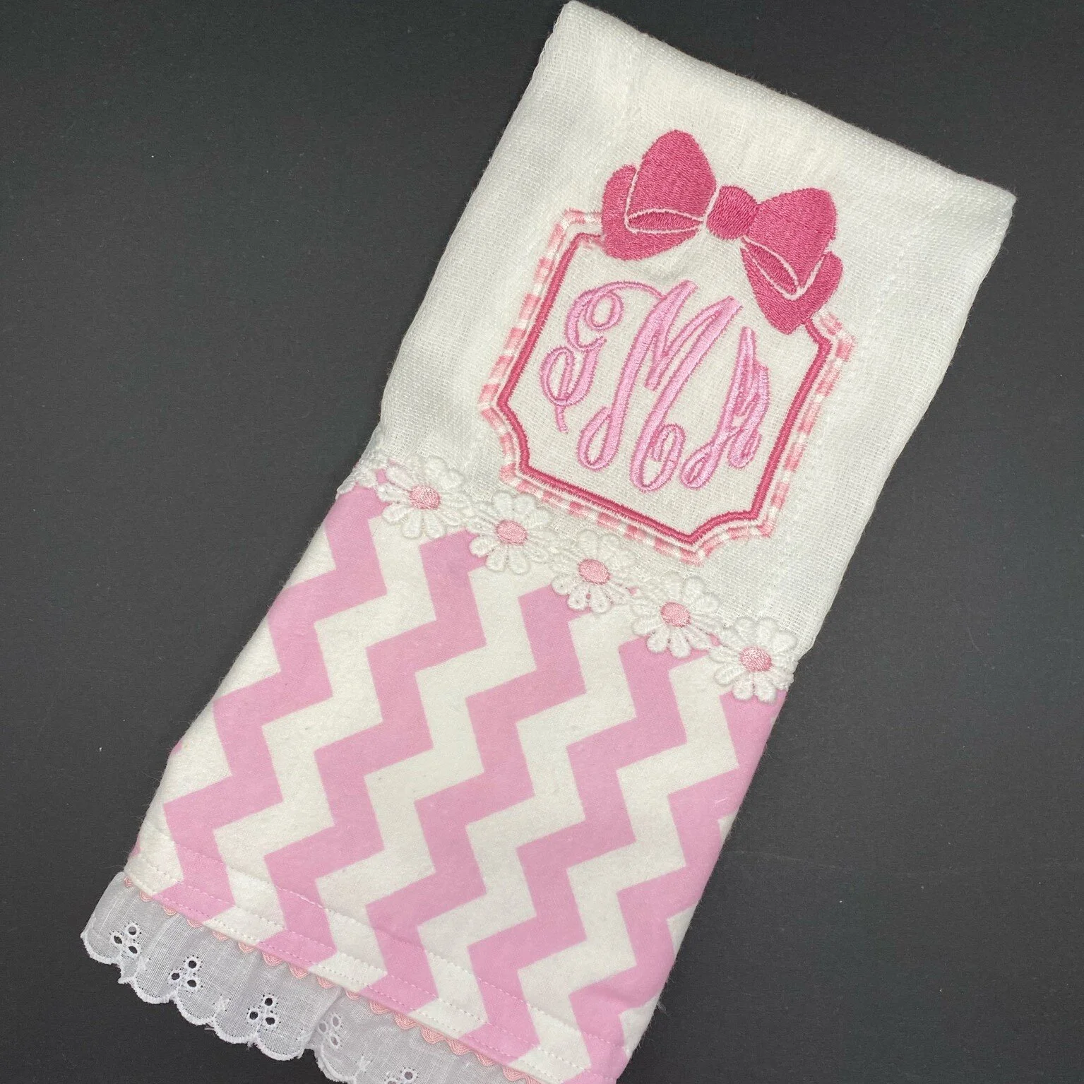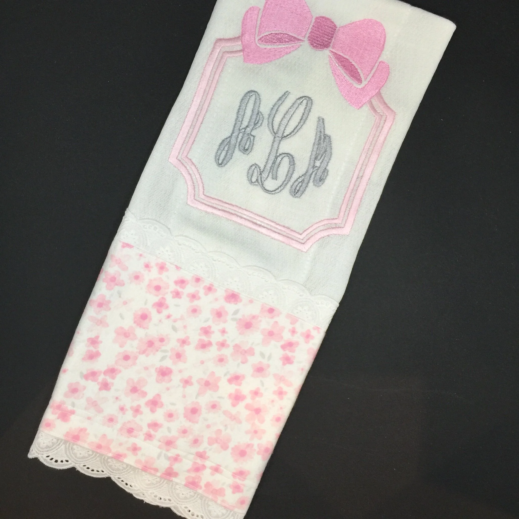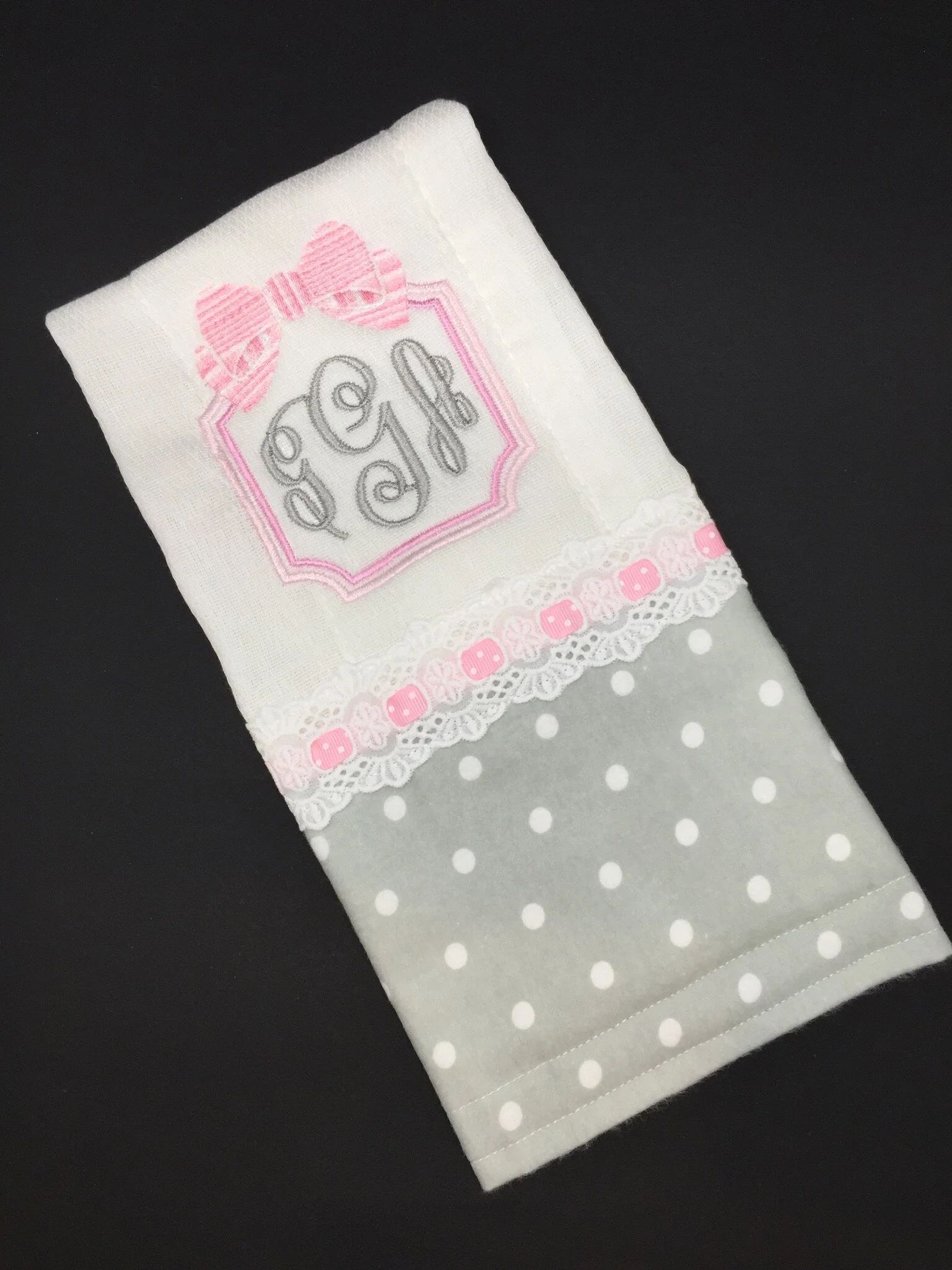 All orders can be fully customized. Custom burp cloths are $24 each with embroidered name or monogram and design. View Sets & More for additional options and discounts.