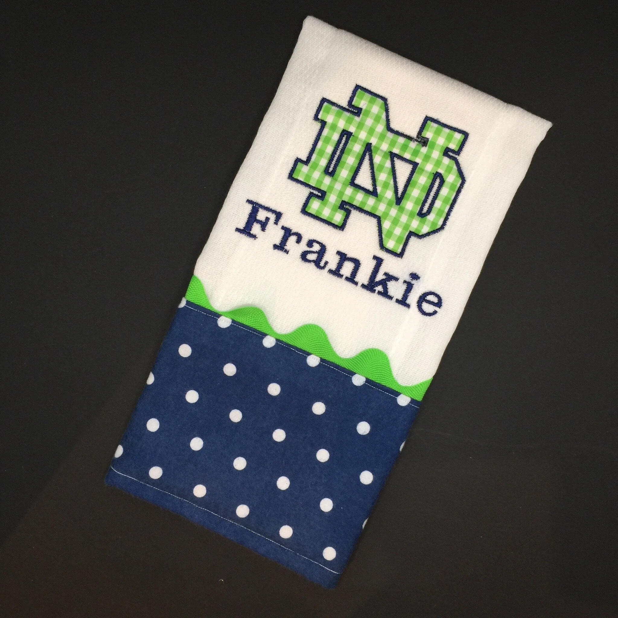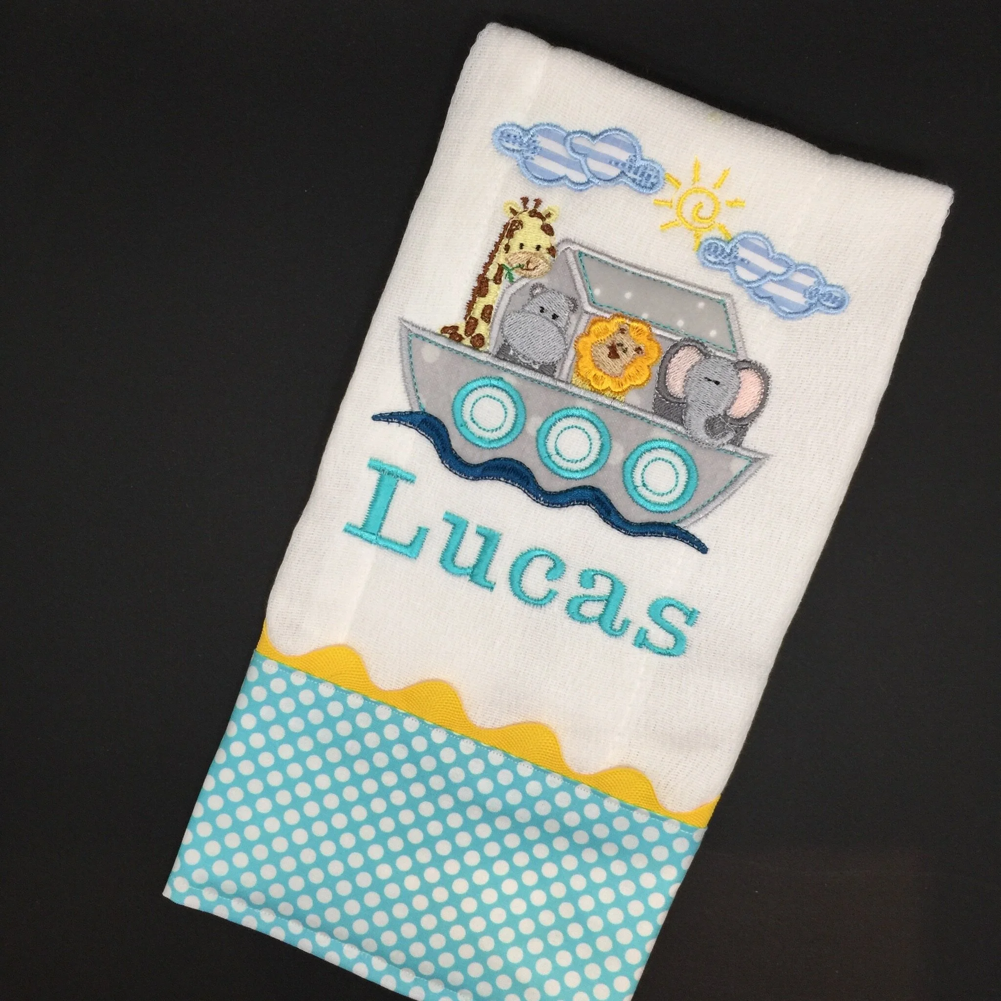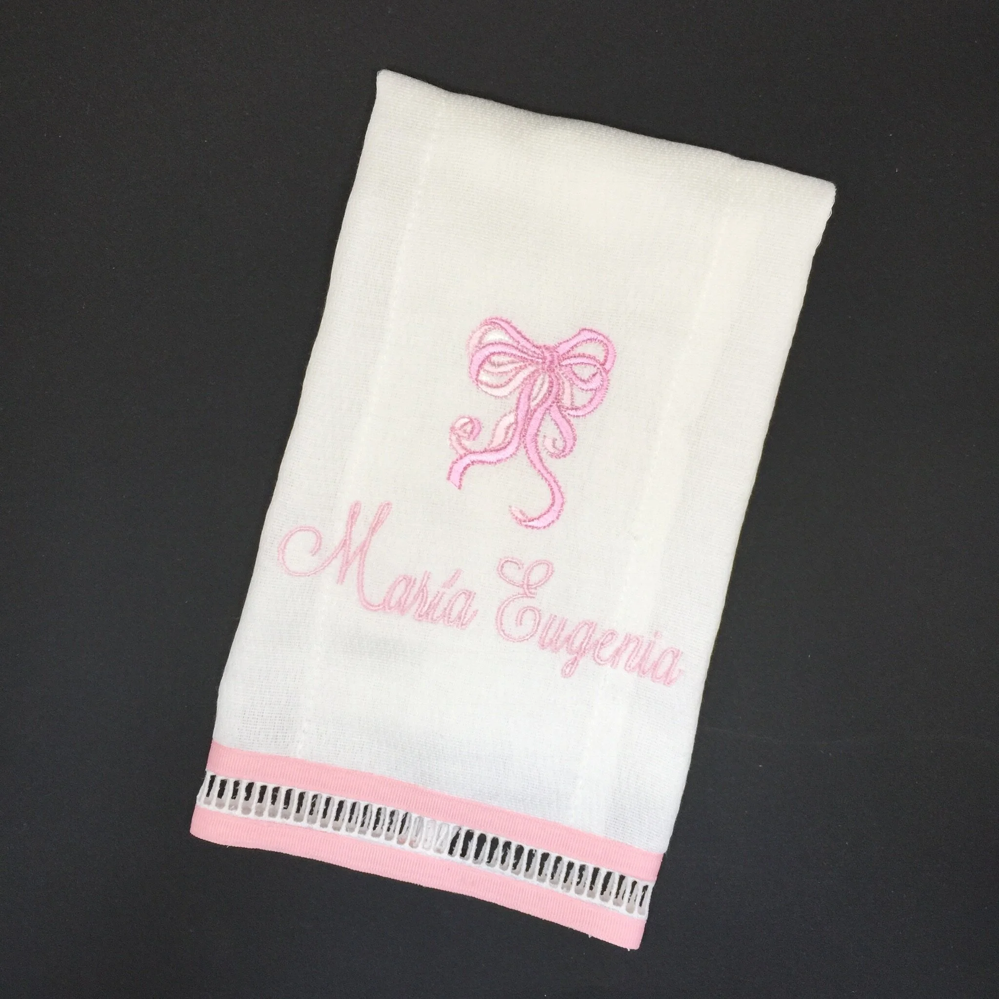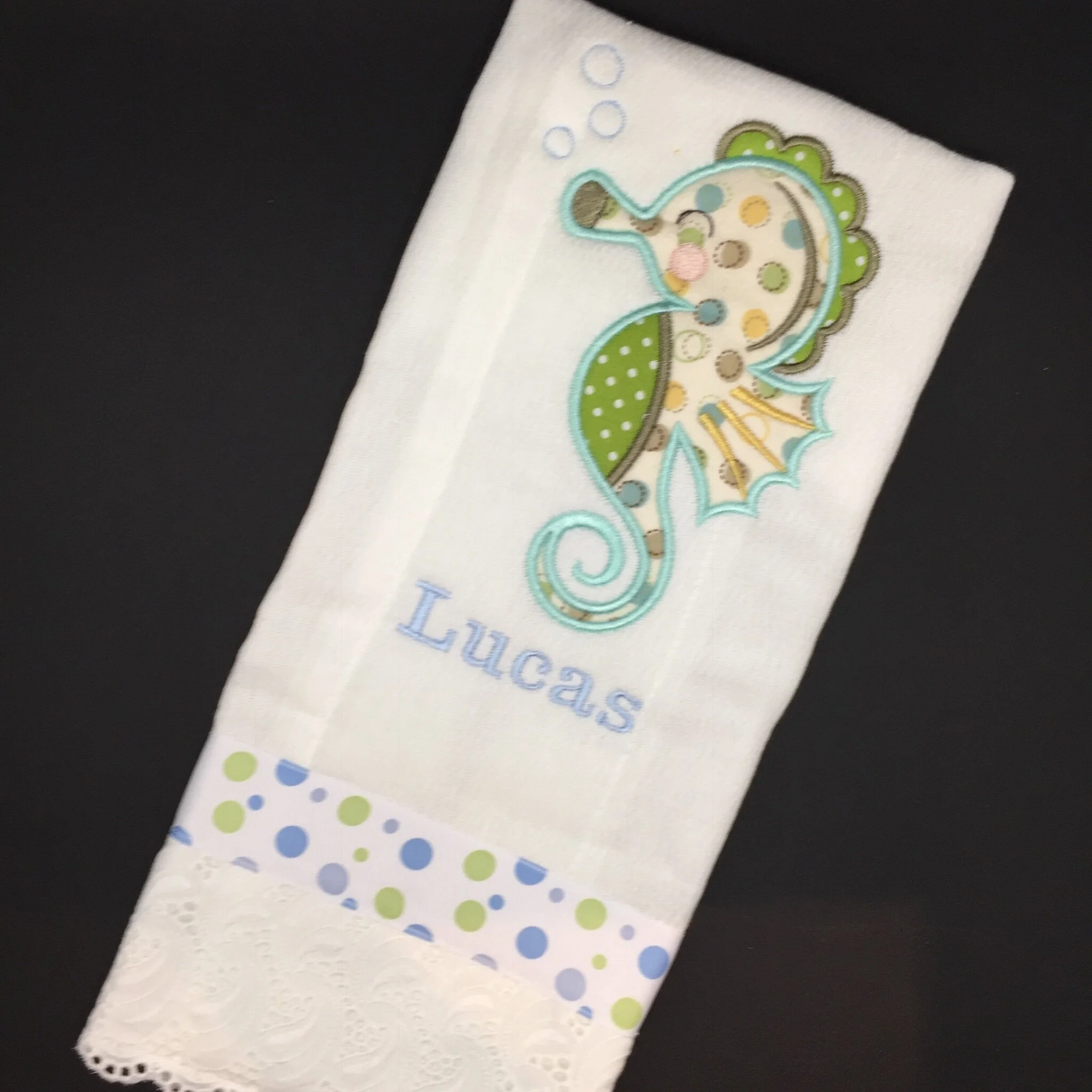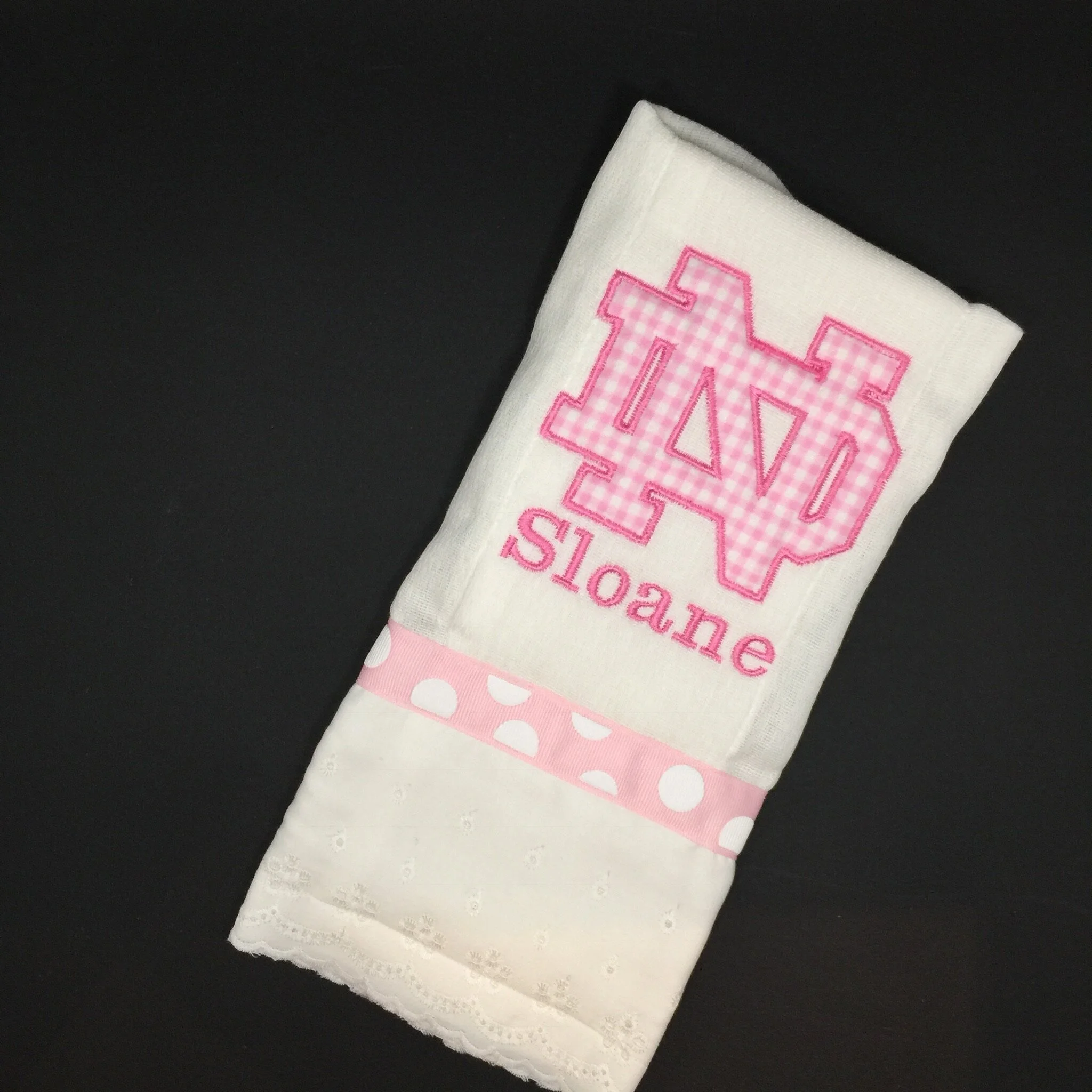 All orders can be fully customized. Custom burp cloths are $24 each with embroidered name or monogram and design. View Sets & More for additional options and discounts.