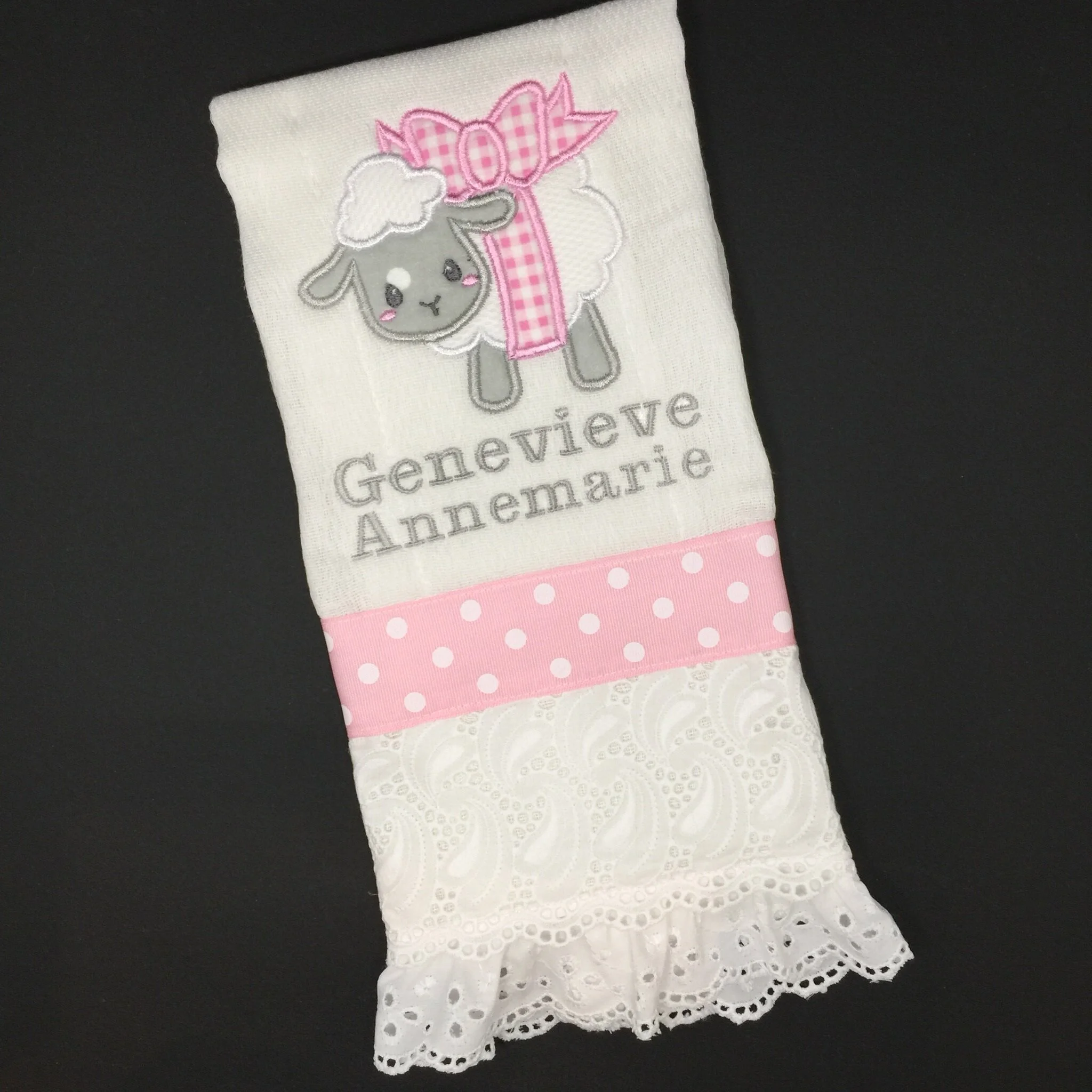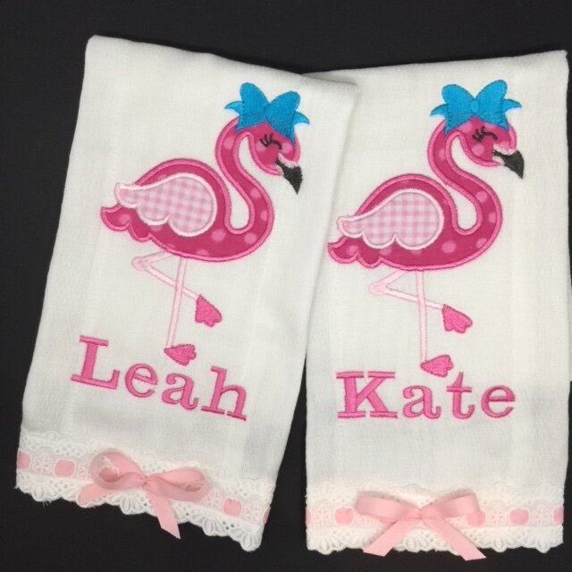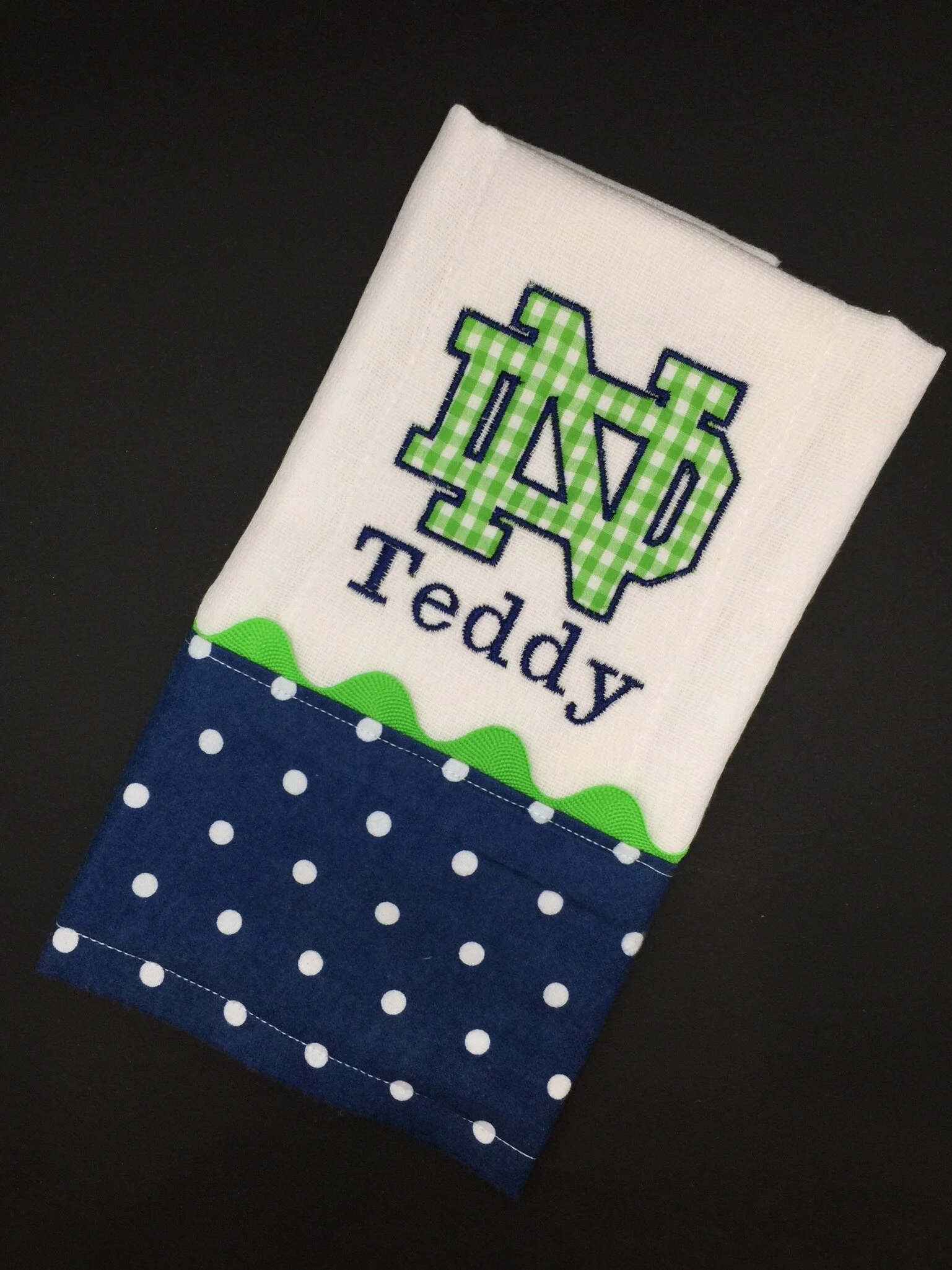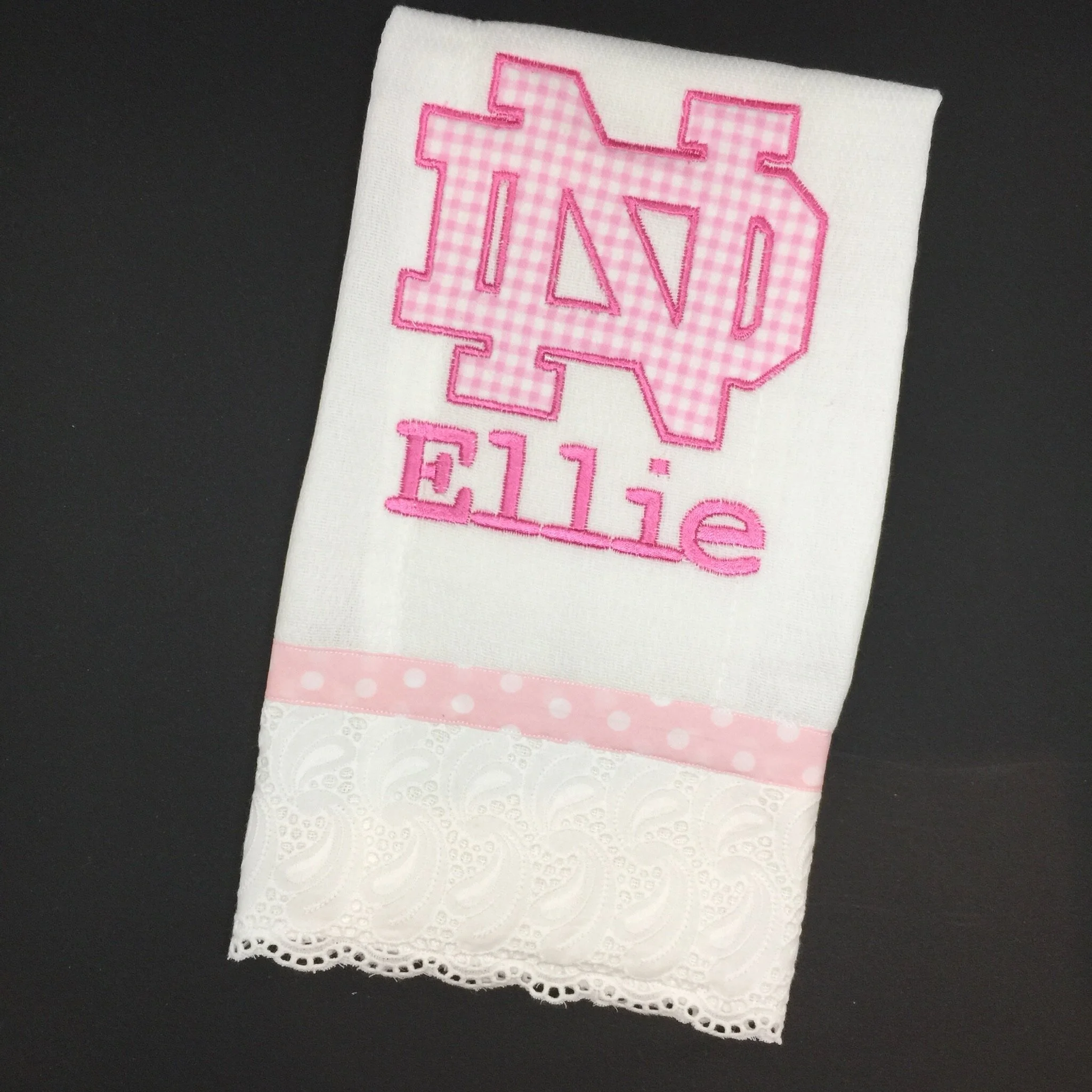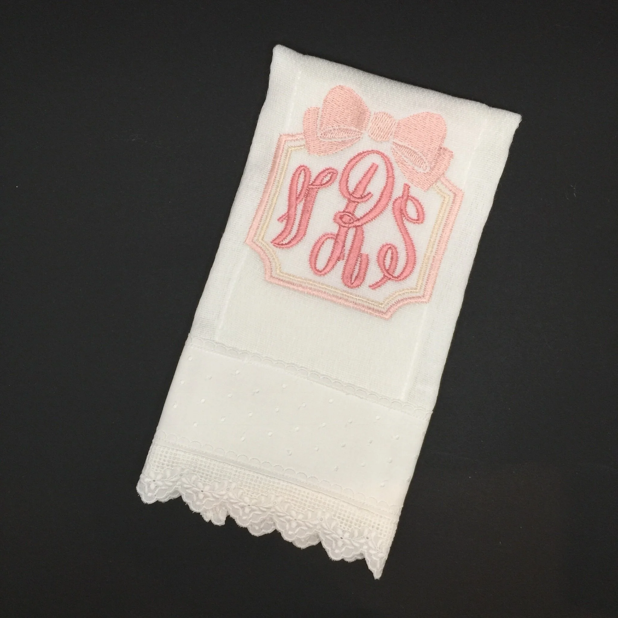 All orders can be fully customized. Custom burp cloths are $24 each with embroidered name or monogram and design. View Sets & More for additional options and discounts.