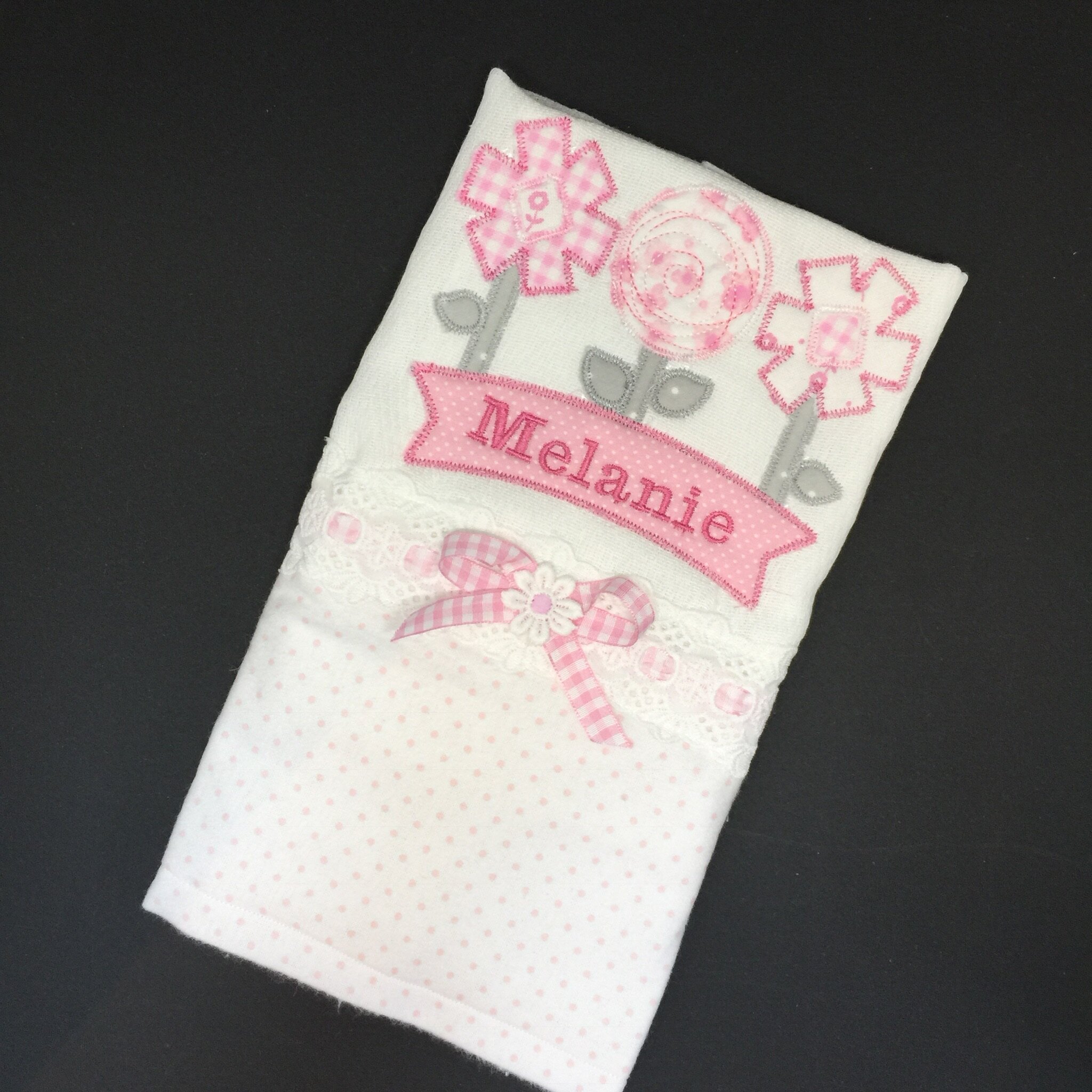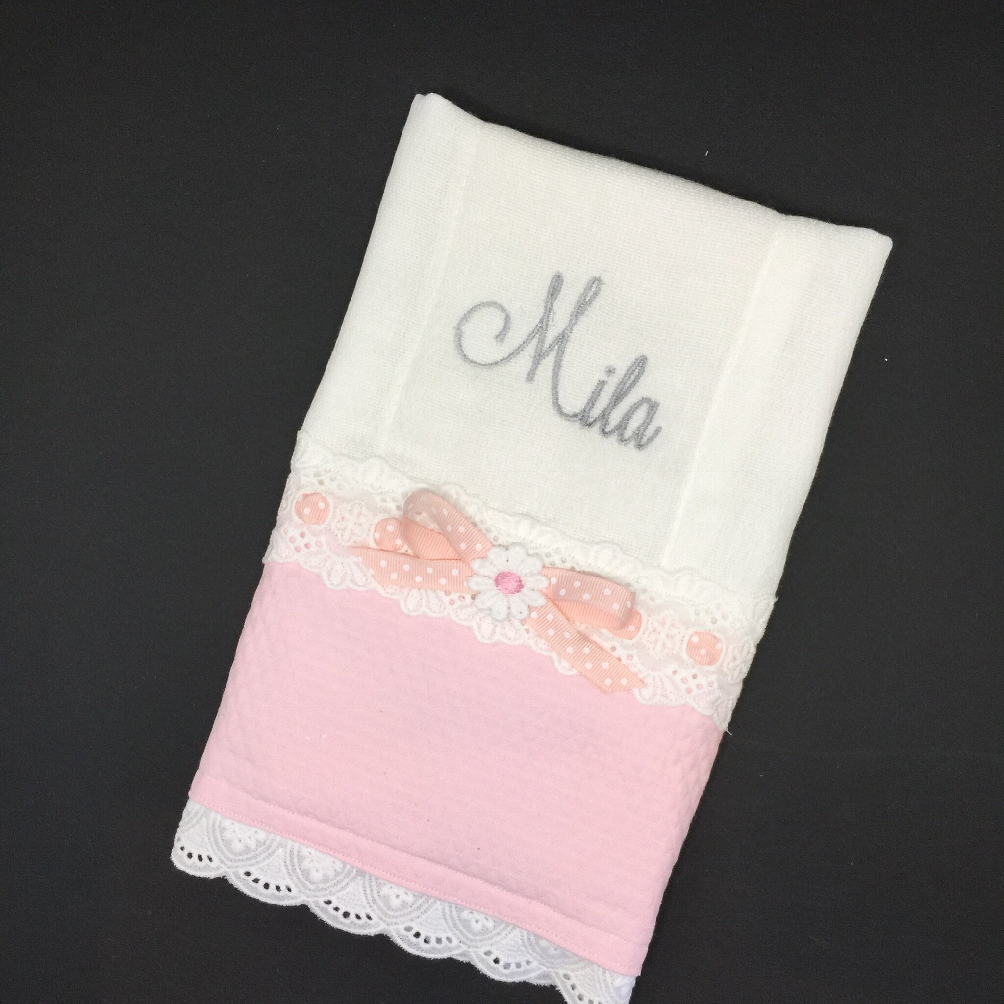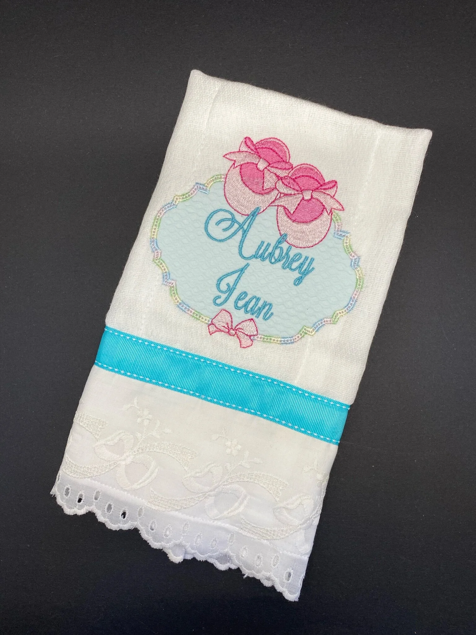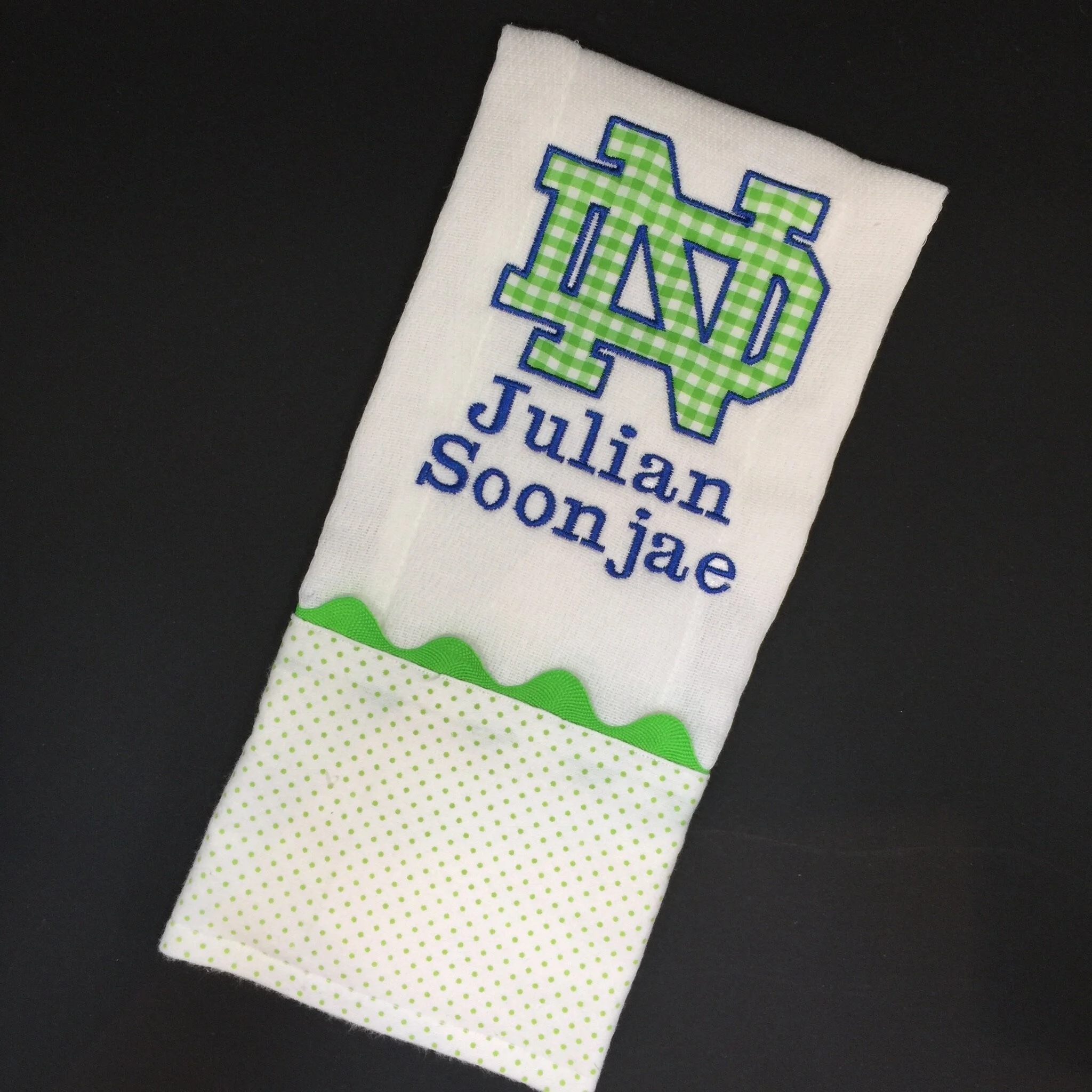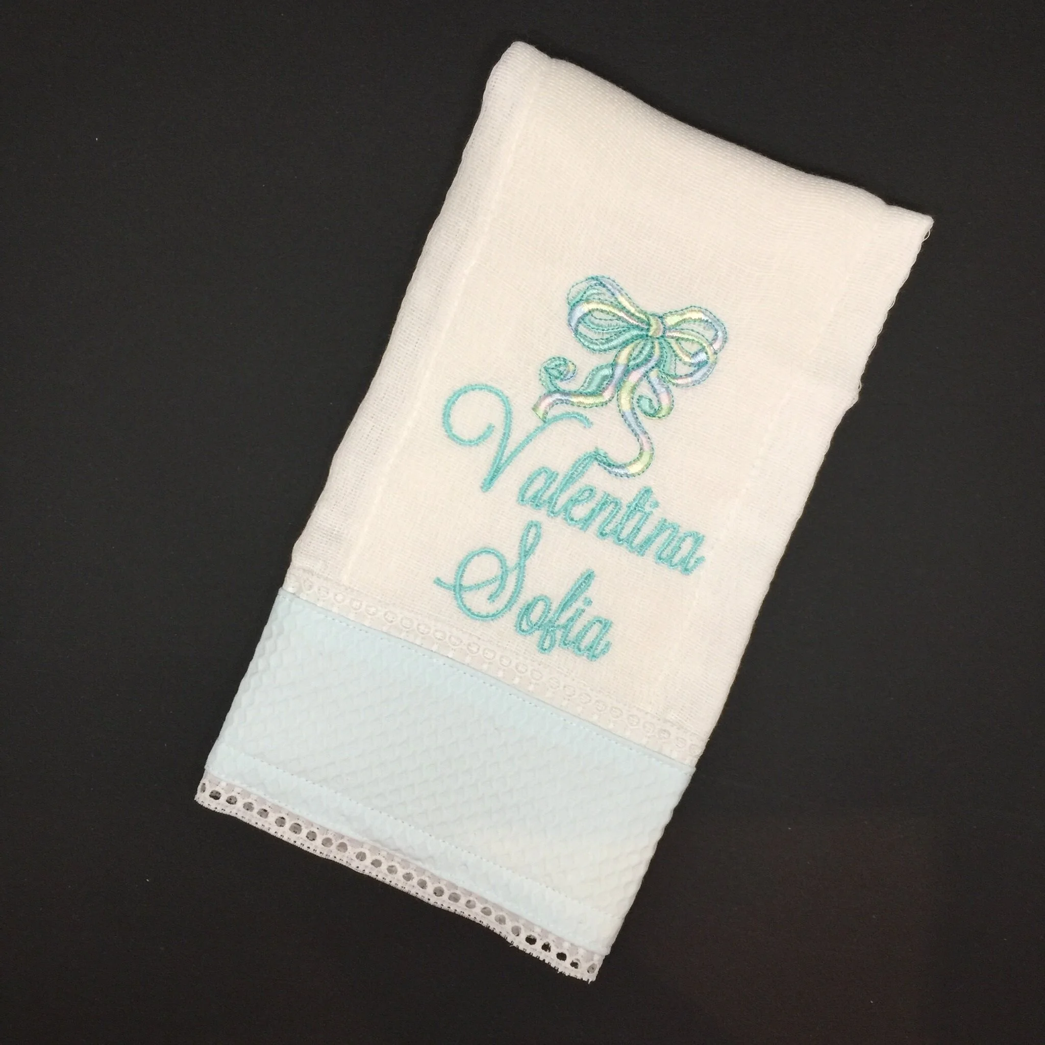 All orders can be fully customized. Custom burp cloths are $24 each with embroidered name or monogram and design. View Sets & More for additional options and discounts.