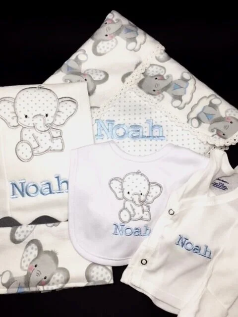 All items come wrapped in cellophane with a ribbon and card. I look forward to making and embroidering all your baby gifts!